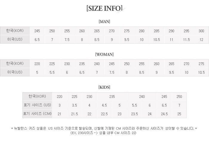 뉴발란스 사이즈